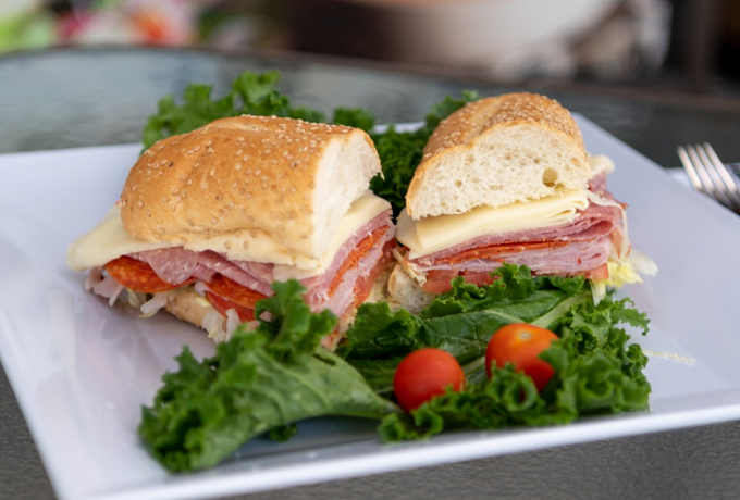genoa salami, spicy ham, cappicola, pepperoni, mild provolone cheese piled high with crisp lettuce, tomato, oregano, oil & vinegar |